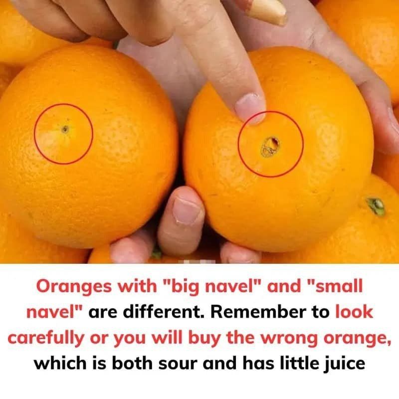 When we choose oranges, pick up each fruit and pay attention to its navel. While the navel of some oranges is large and round, with a very clear indentation in the middle, most others only have a small dot.